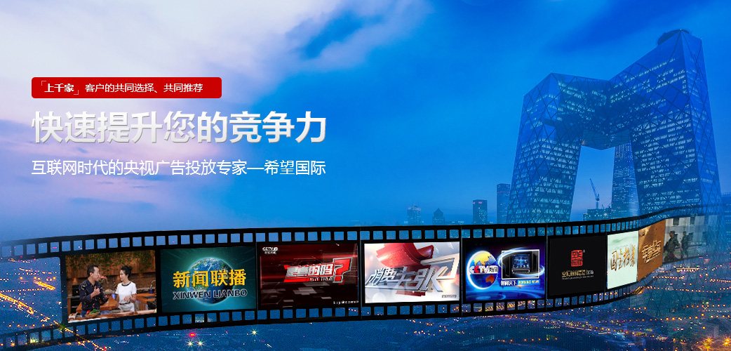 上千家企业的共同选择、共同推荐,资深央视广告投放服务经验助您实现企业价值。