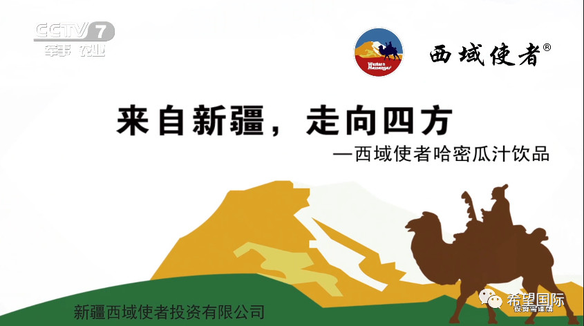 广 告 语 :来自新疆,走向四方,西域使者哈密瓜汁饮品